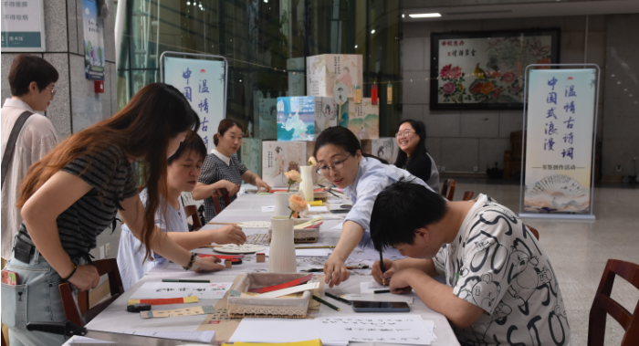 为迎接校园读书节的启动,同日图书馆在东馆大厅举行了“中国式浪漫,温情古诗词”书签创作活动,在西馆大厅举行了“一校一书”精品图书展,荐读书籍40种。东、西馆大厅还举行了数据库宣传推广活动,特邀北京中科、同方知网、万方数据等我校已采购的文献资源供应商到馆宣传推广,通过加强内容引领,提升阅读质量,主动适应数字阅读发展潮流,向师生推送优质的数字阅读资源。