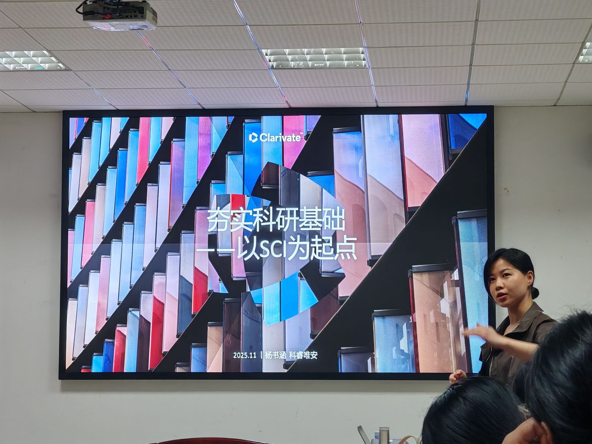 2025年11月27日晚,图书馆联合食品科学与工程学院举办了主题为“夯实科研基础:以SCI为起点”培训讲座。讲座特邀科睿唯安学术研究事业部解决方案专家杨书涵老师担任主讲,聚焦康复机器人领域前沿研究,系统解析如何依托Web of Science平台实现文献调研、选题设计、论文撰写与投稿的全流程优化,为师生提供科研方法论与实操指南。
