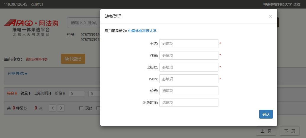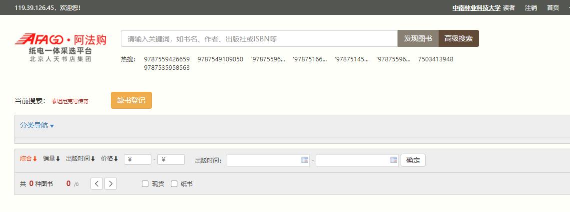 通过搜素,若“纸书荐购”平台没有找到您想要的书,可以进行“缺书登记”。